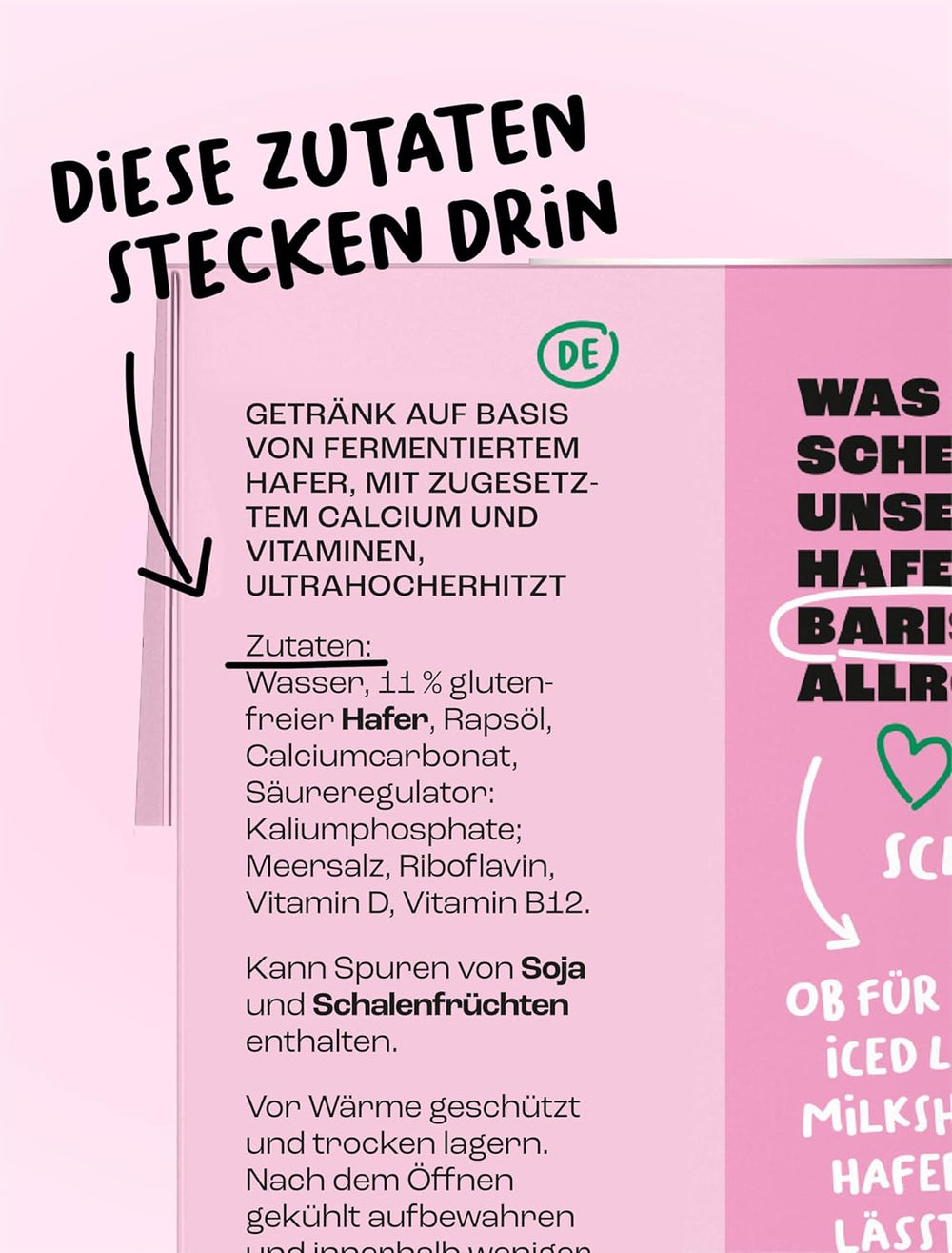 Hafer Barista Drink è una bevanda vegana a base di avena creata appositamente per ottenere una schiuma cremosa nel tuo caffè, sia che tu stia preparando un cappuccino, un latte macchiato, un flat white, un caffè freddo o un milkshake. Ideale sia per i professionisti gourmet che per gli appassionati di caffè a casa, offre una consistenza di alta qualità dal gusto raffinato, senza latticini e senza zuccheri aggiunti.