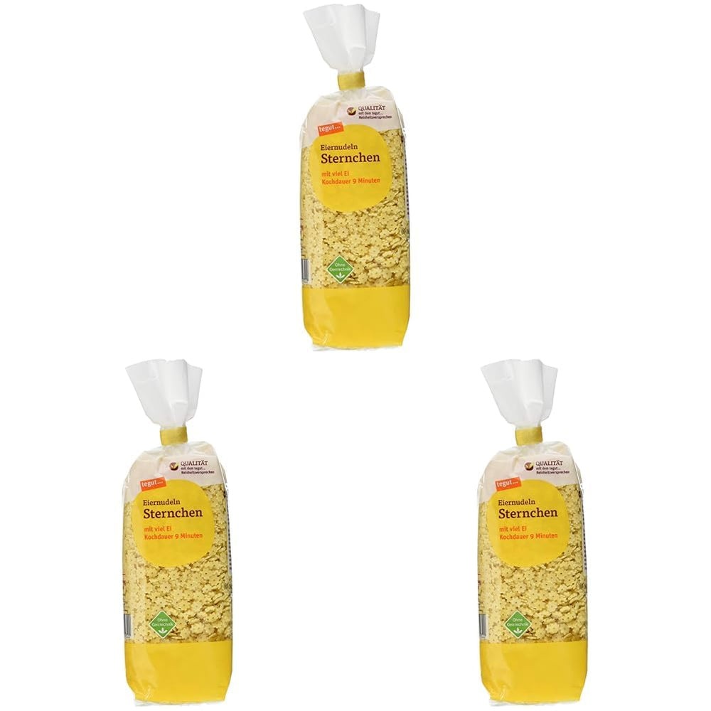 tegut... Eiernudeln Sternchen è la pasta all'uovo a forma di stella creata per gli amanti della pasta autentica che apprezzano gli ingredienti puliti. Adatte ai pasti in famiglia, queste stelle dorate aggiungono un elemento divertente al piatto e si prestano a zuppe ma anche a piatti di carne o insalate di pasta.